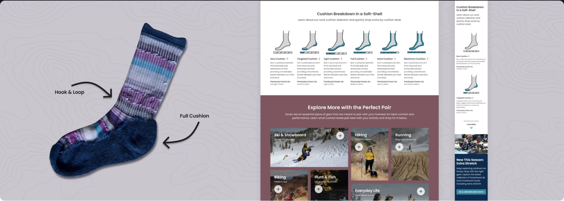 Smartwool customers were frequently confused about what sock cushioning means — particularly its relationship to comfort, performance, fit, and warmth. This misunderstanding translated into hesitation in product exploration and filters, and an inconsistent path to conversion.